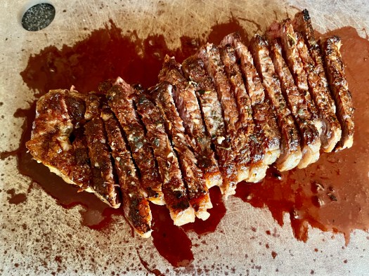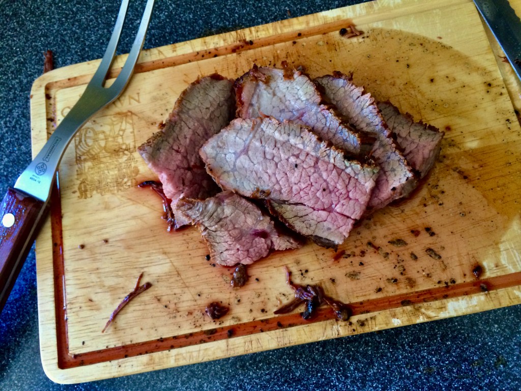 Sliced slow-roasted tri-tip ready to eat – delicious!