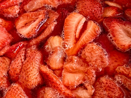 This is a wonderful time of year at our local farmers markets – the fruits and vegetables are at the height of their ripeness with flavors so good and tasty. It’s peak flavor season now for these local strawberries so last week I picked up some at one of our markets – three baskets worth.